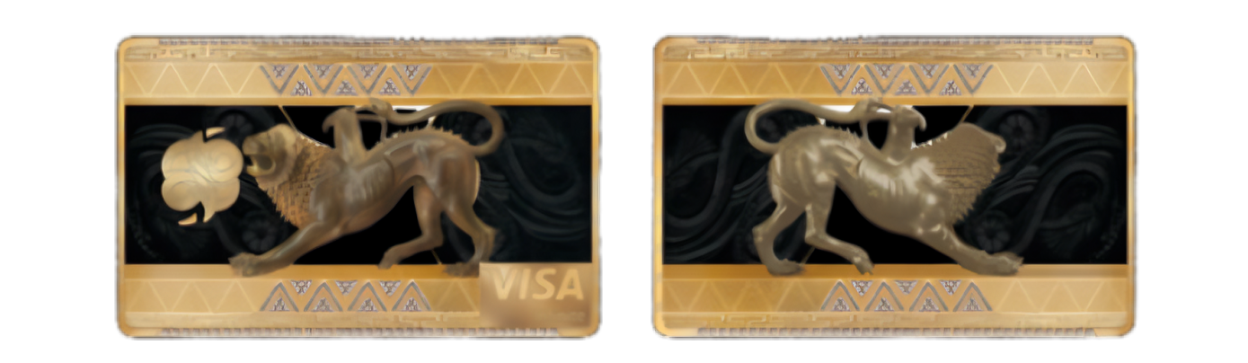 The card defines an individualistic character and a statement of power. The card is handcrafted and designed to perfection, with its quality of diamonds, mother of pearl, rubies, and the structure of the card made in pure gold.